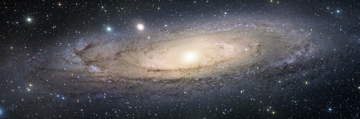 Es el objeto visible a simple vista más alejado de la Tierra. Está a 2,5 millones de años luz en dirección a la constelación de Andrómeda. Es la más grande y brillante de las galaxias del Grupo Local, que consiste en aproximadamente 30 pequeñas galaxias más tres grandes galaxias espirales: Andrómeda, la Vía Láctea y la Galaxia del Triángulo.